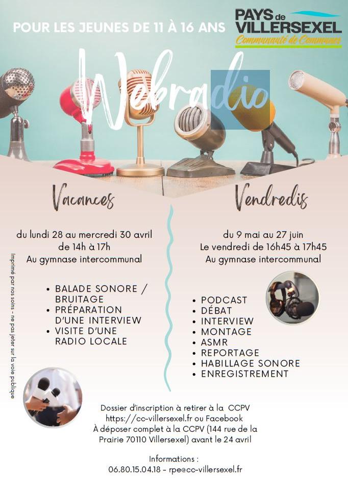 Des ateliers webradio sont proposés aux jeunes de 11 à 16 ans : Pendant les vacances scolaires et tous les vendredis soir de 16h45 à 17h45 au gymnase international de Villersexel.