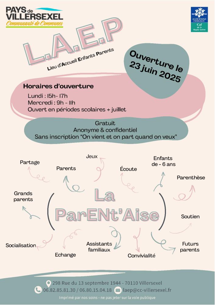 La Communauté de Communes du Pays de Villersexel ouvre un nouveau service parentalité : un LAEP (Lieu d’Accueil Enfants-Parents), à partir du 23 juin 2025, à Villersexel.